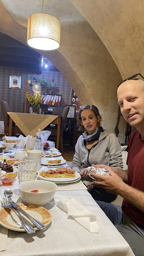 Due to a scheduling issue over our other hotel our tour operator booked us in here. We’d never heard of Dimitsana before and it was our first night of our tour so we’d no idea what it was like.||||Well! If you’re coming to the Peleponnese definitely make a stop in Dimitsana and if you fancy staying on (and you will) definitely stay here!||||Our room was located in a stone tower with panoramic views on three sides of this beautiful village. It was clean, well presented with a very comfortable bed. Shower was good with decent water pressure, nice soaps and shampoos etc.||||Breakfast was MASSIVE! And it just kept coming! Simply the best breakfast we’ve had on our stay and this includes 4 star boutique hotels in Athens. Fresh cakes and breads from the village bakery, literally any cooked food you could ask for set us up for a tough days hike and then some! Simply excellent.||||Special mention has to be reserved for our lovely host who, despite our lack of Greek, always seemed in great spirits, friendly and welcoming.||||Thoroughly...