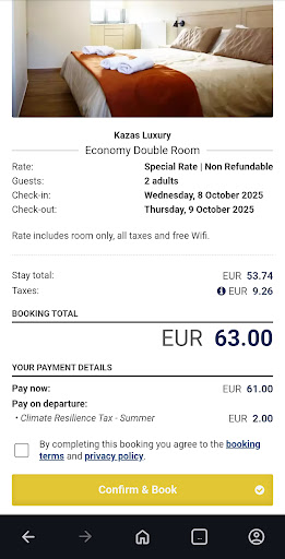 Read moreWe tried to book this for October 14. As you can see from the pics it was 63 euros (or 61 not including the 2 euro room tax) on booking dot com as well as Google. We arrived on October 14 and tried to book the room in person, and the owner offers it to us for 75 😅.