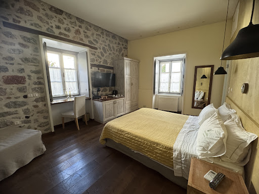 We stayed at Manolia for 6 nights in September. Manolia guest house has 3 rooms and is located in the quiet part of Hydra, just a short 5-minute walk from the harbour. The entrance of the guest house is located in a well maintained side alley that features lots of lush greenery and a sleepy cat. Upon entry you'll find a lovely courtyard with a few garden tables underneath one of the lemon and lime trees. Georgia, the receptionist, gave us a warm welcome and introduced us to the spacious room and a complementary bottle of wine. The bedroom is large and has fly screen protected windows on two sides with seating nooks. It also features a wardrobe, an AC, and a fridge. I would typically not point this out but the lighting installed in this place is great and adds to the charm of the room. At the bottom of the night table we found a night light plug, and a mosquito repellent plug. The wifi internet coverage is good and speeds are fast (about 24 mb/s). The bathroom is also large and has a spectacular shower "cave". The room was cleaned spotless daily. If I had to pick a feature to improve I would pick the smoke detector on top of the entrance which had a green led light that was a bit too bright in total darkness. We covered it which solved the problem. We handwashed a few clothing items during our stay and were able to use the clothing line of the rooftop terrace. The entire place was designed and renovated by the owner. It took him 2 years to complete the renovation prior to the 2016 launch. Manolia is a family-run business and you can tell that a lot of thought has gone into the design and features to make the guest feel like they experience a truly special guest house. Having travelled Greece numerous times, I can comfortably say that Manolia is a high end guest house that offers excellent value. Stay at Manolia if you want to leave beautiful Hydra...