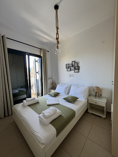 This accommodation is underrated as there are apartments inside not hotel rooms of 16 square metres. A studio means 2 rooms: bedroom and living room. You have a kitchen that is fully equipped but who would want to cook when the food is incredible in all the restaurants and terraces outside. I prepared 2 teas and that's it, I haven't touched anything else from the kitchen. Ioanna is very nice and kind, there was a bottle of raki inside and some bread for a small breakfast. We enjoyed the balcony in the morning to...