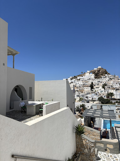 Read moreMy brother and I stayed here for 4 nights last month. The day before we were due to arrive I got an email asking my arrival time to the port but only for us to arrive and not find a transfer waiting for us. The location of the hotel is lovely, right in the centre of the town and nightlife. Once we arrived at the hotel, we were pleasantly greeted by George and his wife and he took us up to our room. Our room was good for the price, although one of the lamps was not working nor was the shower head working. We had to take the shower head off the shower for any water to come out and we could not hang it up either as the shower head holder was broken. We had a room directly above the bar and although we like going out ourselves, we found the noise at the bar went on until very early in the morning. We knew Ios was a party island before we came but we thought the staff would have opening and closing times. We were not able to go out every night due to a tight budget. As we would spend the majority of the time outside the hotel and only came back to sleep it suited us fine. When we checked out of the hotel, we found the woman on reception was quite rude and didn't even know if we had paid or not! The hotel was average but I don't think I will be back in any rush. I feel the hotel itself is more suited to large groups who come just for the nightlife and not for backpackers who enjoy a few nights out but also want to...