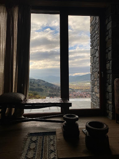 Read moreThe timid exhibitionist’s dream, eat, drink, shower, sleep with the village of Kalavryta at your feet. Floor to ceiling view and you are so far from anyone there is total privacy. We were in one of the new suites and they are very nice, enter through what can only be described as an artificial stone lined canyon from the car park and you are greeted by cozy modern decor. The place is a little form over function but the form is fantastic. Some shelves for bits and pieces in the bathroom and a few more hooks to hang towels would be great. No drawers means you can’t leave anything behind though. The bunk bed is not suitable for little kids, even if you brought an extra fall protector/barrier. We brought the outside table inside so that we had something to eat from. There is also not much information in the room, any for that matter other than a number to call for breakfast at 0830. If you are hitting the slopes early then you aren’t eating the excellent hot breakfast first. Lots of other nibbles provided. Shame the private pool on the terrace wasn’t prepped for use or there would have been some cold dips followed by hot showers. So not a 5 but a cracking place and the shower with a view is one for the...