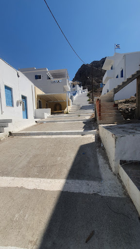 Über ein paar Stufen gelangt man dann in die Dorfmitte (keine 3 Minuten Gehzeit) wo sich Hund und Katz (im wahrsten Sinne des Wortes) die Hand geben. Der Strand liegt malerisch in einer kleinen Bucht, hier gibt es auch genügend Sonnenschirme samt Betten, Stranddusche und WC sind ebenso vorhanden. (Das WC ist im schmalen Seitendurchgang der Gasse zu den Treppen hin...) Im Dorfzentrum gibt es einige gute Tavernen, je nachdem was man möchte, gibt es hier für jeden Geschmack etwas.