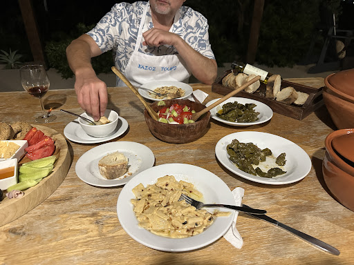 I did the cooking class, and had an amazing experience. I went to Kasos’ tours estate (a short walk from Panagia, but I was also offered to be picked up), and was received by Maria and Nina, the two ladies who taught us how to cook local cuisine. We made fresh bread on a Kasos clay oven, makaroni with sitaka (a local pasta with a local goat/sheep cheese) and caramelized onions, and xylokopites (fried dough) with honey for dessert. All of this with abundant home made wine and the most beautiful wine. It was just me and two other guests so it fell very cozy and personalized. Loved it and totally...