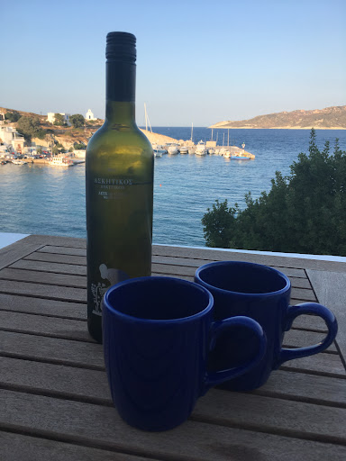 Nice location on the port, at the end of a small street so it's very quiet and offers privacy. It's actually two small houses, one as a room and the other one as a living room, a charming private courtyard and the terrace with the amazing view on the sea and the island of Poliegos. You can just go down the street (50m) and swim before you have your breakfast...