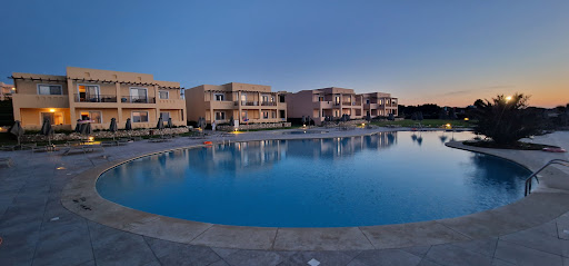 Read moreIt is a big, clean, modern resort with a nice garden, seaview, beach bar, pools and amazing sunsets. The staff are very friendly and they take you to your room with golf cars. Our room was nice, big, clean, with confortable bed and a nice seaview.|There are 2 restaurants and 2 beach bars where you can get a snack. The hotel has 4 big pools, but it can be difficult to get a lounge at the pool if you are not there early in the morning. There is plenty of good food for breakfast and dinner, however there is too many people, so it can be difficult to find a table. |The restaurant closer to the reception is not that nice, it is older and overcrowded, the staff there are not very friendly and they even have a smoking area in the middle of the terrace. We preferred the restaurant on the hill. |The hotel is in the middle of nowhere, so there is nothing to do except walking around the resort if you don’t have a car. However, the resort garden is very well kept.|There is a bus stop in front of the hotel, so using public transport is one option, but there are only a few buses a day. It is mostly German hotel, a lot of noisy German turists arriving with turist agency with big buses and even the menues in the hotel are in German. They can get very loud at the pool, throwing a ball and drinking.|The hotel doesn’t really have a Greek vibe.|You have to pay for towels and beach lunges.|The beach is quite windy and there are a lot of waves in the sea, the beach is not that nice...