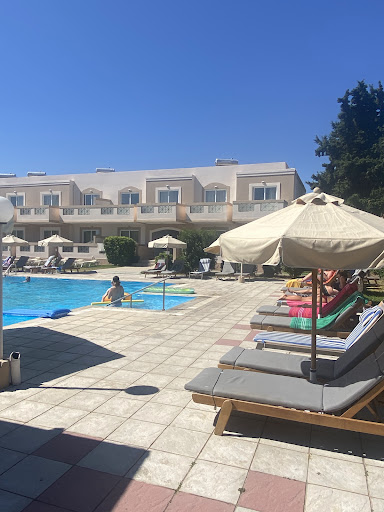 Read moreSo here goesâŚ.. I am a woman of pretty simple tastes, Iâm not that person who is prone to complaining or making a fuss unlike others I seem to see and find extremely annoying. I would say my bar is pretty low as opposed to my husband who likes the comforts of life. If you are a type of person like my hubby who likes things perfect and on the fancy side then the room we had is not for you so save your self the stress. If not I imagine you will spend a lot of the holiday complaining about the numerous inadequacies of this accommodation. Just to be clear I am not complaining about this room as our holiday was cheap, ÂŁ1400 for three adults with a basic continental breaky thrown in and we went for 10 nights. So thatâs a bargain all day long. We shred a room so it was tight, not a problem willing to sacrifice for economic reasons we also paid for air con obvs. As u can see from the pictures we he room is so old itâs actually retro and the headboard would possibly have some antique value and deffo get snapped up at some cool and happening retro store. The bathroom was reminiscent of my first hols abroad in the early80âs, again I actually find this kinda cute and nostalgic. However, Iâm pretty weird⌠so my friends say. If you are averse to the basics then the cheap and uncomfortable mattresss could be an issue, the door that doesnât close without a good foot shove and the pretty weak air com may be a hardship for u. Oh and the shower head needs some bodging to make it stay. Like I say me and the son love a bit drama and are very much not of the diva variety so we thought it mostly amusing. Thereâs a super cold fridge which identifies as air con so as a crazed menopausal women stand in front if it. It works wonders. It was a quiet hotel when we stayed mid July and seems to be run by a family. We were in the older rooms and I believe they have upgraded some others which you can pay more for. There are two lovely older women who do the breakfast and they are adorable. They make the cake and flapjacks themselves. Breaky is basic though but perfectly good enough if u want a meal at the start of the day. Iâll be honest we eat out every night so save our spends for this. The hotel pool has a bar and food but we rarely sat there except for beer breaks on occasional pool days. They do a steak night, music night and games night. We didnât really attend but had a drink some nights there after being out. It really lacks atmosphere for me and the staff just seem knackered and not particularly chipper. We hired bikes from ideal who are the psalidi side of kos but town. Great older couple who couldnât do enough for us. Kos town was incredibly hot and busy at this time of year and we wonât do it again but thatâs down to preference. June is far nicer and quieter. Hire bikes to get u around itâs totally fab. Be warned though tourists and locals use scooters and mopeds on the cycling lanes so your wits are needed about you. Lambi beach is nice if you head past the harbour and go first right at the roundabout, google map old river which is a bar and they do free beds if u buy something. Itâs busy though. Just before the old river is a lovely icevream and pastry shop where itâs got a traditional offering rather than sitting in a large generic bar. Itâs preferable for me. Go to paradise beach itâs great and lovely views we went with a tui excursion but busses...