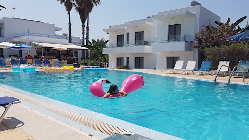 Read moreWe had a relaxing holiday in this little hotel. The room was basic but was as expected. It was kept perfectly clean with regular towel changes. There were also blankets in the room for colder nights in October. A hairdryer was provided. |The kitchen facilities were basic - a fridge with enough room to store food, snacks and drinks, a toastie maker which we used to make toast for breakfast and two hobs. We were able to cook pasta with vegetables and a sauce on the hob a couple of nights and the other nights we ate out as there were so many good restaurants nearby. The hotel provided some fairy liquid and a sponge scourer and a tea towel for washing up which was handy. |Sun loungers around the pool are comfortable. Staff were always eager to help and even arranged for my laundry to be washed when I enquired about washing machine facilities. |It’s about 1km to reach the main street with restaurants on it. About 500m requires walking on the road or on the beach - either felt safe, though bring a torch for walking back at night along the beach. There’s a short cut through a field near the hotel, as long as the cows aren’t there! There are lots of great restaurants - we didn’t find any bad ones. Our favourites were Vasilis and King size. For breakfast and lunch try the bakery, Pannapalis, who serve delicious crepes and waffles. For desserts try Yoca, the ice cream shop opposite Vasilis. |We hired bikes from Nikos and used these to cycle back and forwarded to the shops, or to cycle to the restaurant Ampeli which is 2km away from the hotel but worth a visit. We also cycled to Kos town, about 12km away, about 6km cycling on mostly flat roads then approximately 6km on the flat cycle path which began at Lambi beach all the way to Kos harbour. There’s whole route felt safe (safer than cycling in UK), though maybe the roads are much busier in the summer than in October when we were there. |Only two negatives of the hotel for me - The shower had a curtain which made the small shower area feel much smaller and although the shower pressure was strong, the drainage wasn’t great, so it tended to flood the bathroom a little. Secondly, the wifi in the room wasn’t great and didn’t automatically connect, which I didn’t...