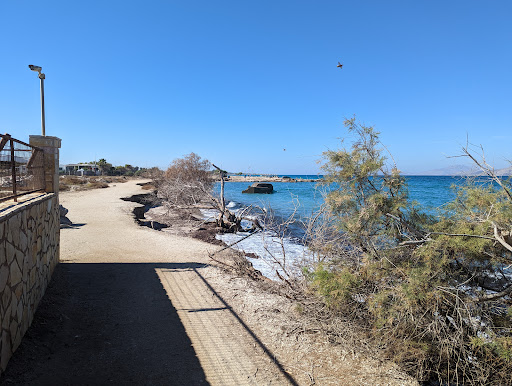 THE BEACH Hopefully from some of the pictures you will see that the hotel backs onto the beach and sea. You cannot get into the sea here as the beach drops off with a small drop into massive rocks. There is a beach 10 minutes walk west that is nicer, but sunbeds are €10 per person