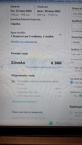 Κλείσαμε ένα δίκλινο για την εβδομάδα του 15αυγουστου στα 80 ευρώ. Δεν άξιζε σε καμία περίπτωση αυτά τα χρήματα. Πολύ παλιά και χαλασμένα στρώματα με αποτέλεσμα να μην κοιμηθούμε κανένα βράδυ καλά. Τα κρεβάτια πολύ παλιά με σάπιες πρόκες με αποτέλεσμα το ένα κρεβάτι να σπάσει όταν απλά κατσαμε. Ελλιπής καθαριότητα. Η βρύση έσταζε και σαν λύση είχαν βάλει ένα σφουγγάρι από κάτω. Δωμάτιο χωρίς σιτες, και ενα ποντίκι να τριγυρνάει από εξω. Αφού τα είπαμε όλα αυτά μας έκανε έκπτωση 10 ευρώ την βραδιά. Εν κατακλείδι, καλή...