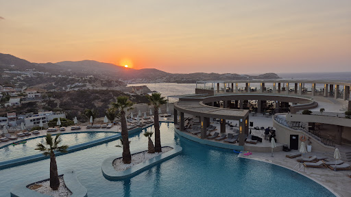 Read moreWe stayed here 25th August - 5th Sept 2024. We read with some concern some of the reviews , but had no reason to be worry at all as we had a fantastic stay.|The Rooms|There are a variety of rooms, we initially had a land view, but requested to change after a couple of nights because of noise. The room was off an open walkway where the noise echoed throughout, with people arriving with suitcases all night. The receptionist was great and 2 hours later had a wonderful room, quiet and with a view down to the bay. The rooms are kept spotlessly clean, there was a welcome bottle of wine, toiletries and towels changed daily. The safe is free too.|The Pools|We went to the quiet pool once, clean and easy to get drinks. The towels are collected from your rooms or the reception. There was no sun bed reserving, we went down at 9.30 to both beach and pool throughout our stay and lots of sun beds were available. The activity pool had music playing and lots going on, which was very popular. |The activity notices and the shows are predominantly in French.|I used the gym a couple of times, the machines were all working and there were plenty of weights. There are shops by both pools with lots of local items to buy. There is also a supermarket 5 minutes walk from the hotel.|Running was interesting. It's relatively flat for 400m out the main entrance. Then 1 mile down hill to Ligaria and 400m along the waterfront. Tough coming back. |We walked to Ligaria a couple of days too for something different. The beds and parasols are only Euro7. There are a bars and restaurants along the front as well as a supermarket. We ate at the Tavérna Anatolí which was fantastic.|The Beach|You can either walk or get the fun bus down to the beach, lots of beds on the beach and dotted around the beach bar, lots of umbrellas and tables. The bay is great for swimming and snorkelling, where we saw fish, crabs, sea urchins and I saw a lion fish too! Poseidon Adventures on the beach have canoes, kayaks, pedloes and boats to hire, there is also scuba diving. For 15 euros we took the kayak around the bay for an hour.|The beach bar offers hot/cold drinks, biscuits and cakes and snacks, there are toilets and showers also.|The food|Wow oh wow, so much on offer|Breastfast|Cooked breakfast, salads, breads, meats, fish, fresh fruits, yoghurts, juices, cereals, croissants, tea, coffee on tap. Even Champagne available a couple of times!|Lunch|Both the beach bar and activity pool bar had snack food at lunchtimes, but was quite limited. We went to the Activity pool a couple of times for lunch where they did Gyros and chips. It was surprisingly un-popular. I think most people went to the main restaurant.|Lunch and dinner - main buffet restaurant|Cretan foods, cooked meats, veg, pots and chips, pizza and garlic bread from the pizza oven, fresh pasta, soups, breads, amazing salads, and the most yummy desserts. It was a little repetitive, but with so much choice, there was always something different to try.|A La carted|You can book once a week here - we had the most amazing lamb dinner|The Greek Taverna|A medley of dishes brought out, so good to try traditional dishes. You can book once a week here too.|The staff|All so friendly, hard working, polite, funny, bi-lingual and many have other family members working there too. Maria looked after us in the morning with lots of coffee and Athina in the evening for dinner, they were our faves. All the staff make the hotel the success it is.||The main bar has a good spacious area with comfortable seating and a wraparound balcony. Lots of delicious cocktails and other alcoholic and soft drinks available. Tea/coffee, Raki and popcorn for the kids.||Trips|We took the bus from the hotel into Heraklion and walked around the Venetian harbour, shopped and had some beers, wished I’d gone to see the museums, not enough time though.|Spinalonga|We booked through viator and had a great boat trip out to the Island and Agio Nikolias.||We took euros with us and credit card, the hotel can break any notes into smaller change which we tipped the staff with.||We only heard a couple of English speaking families, people when we were there, but that wasn’t a problem as everyone was very friendly.|Please note, the hotel is situated on a cliff and there are slopes and lots of steps. Whilst there are golf carts and buses that will transport you around. You need to be fairly happy to walk up and down hills and steps. It's a good way to burn off the calories from the excess...