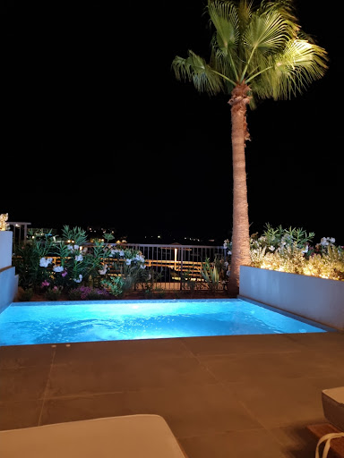 Looking for somewhere warm to just kick back, relax and do as little as possible we probably looked at 100+ boutique hotels and resorts around the Med, until we came across Castello Infinity in Ayia Pelagia and something from the pictures and reviews said "this was the one". And it certainly did not let us down in a delightful and relaxing week. Everything we could have asked for and more.||The Hotel is only twenty minutes around the headland from the airport at Heraklion and weâd strongly recommend a taxi transfer that delivers you to the door. 20 minutes from walking out of arrivals at the airport. The hotel is sited at one end of the calm bay and beach-front of Ayia Pelagia, which itself is a small but delightful village nestled against the clear blue waters of Creteâs north coast.||A very slick, friendly and professional welcome, but more about the fantastic staff at Castello later.||We had booked quite late and had an Aquamarine mountain rather than sea view suite, which turned out to be a stroke of luck due to the hotelâs position within the local topography. And thus we found ourselves in room 1201 on the second floor, and being the first room on the corridor enjoying an expansive and more spacious balcony area. The room was a very good size, with fairly minimalist but fitting decor. Important points about any hotel: Pillows - excellent; mattress - verging on the firm side of firm but very comfortable; Shower Pressure - excellent with both a waterfall and hand held shower; Hot Water - plentiful. Add to this plentiful wardrobe and shelving space; coffee machine; safe; a wonderful standalone full length mirror, effective air-con; excellent wi-fi, electronically controlled black out blinds including bedside controls; and the ubiquitous large TV - not that we flew to Crete to watch television. Lovely bathroom; both room and beach towels provided. Everything pristinely clean. Big tick.||But somewhat pales in comparison when you step out onto the west facing and spacious balcony. Two very comfortable sun loungers, a spacious area for the table and two chairs; and the piece de resistance the plunge pool glistening in the sun. A good size being probably around 3m long and 1.75m across. 180 degree view from the balcony taking in the fairly steep hillsides rising up from the village and giving a spectacular view of the beach front and much of the bay. Given the aspect somewhat shaded in the morning, but the table and plunge pool picked up the sun from mid morning, and the whole balcony not long thereafter until the sun started to set behind the mountains. Whilst not the more premium suites offered by the hotel weâd much prefer this over the ground floor mezzanine suites. On the tick list: Balcony even bigger tick.||The restaurant and bar area is mainly outside on the first floor of the hotel with tables set to offer a wonderful view of the beach front and sea. Breakfast has a fairly extensive and delightful menu, plus a buffet for fruit, savouries etc. âPie of the Dayâ may all sound a bit Lancastrian but it is far from it. The evening half-board menu still offers a good choice - half-dozen starters and a similar number of main courses, and with a single desert choice that changed each evening. That said the a la carte has a wider selection for all courses, and we did dither over that when booking. Something of a coin toss in the end. All the menus can be viewed on the hotel restuarant website. Suffice to say though that the food is delightful - our standout favourites probably the mushroom risotto, and thinly sliced pork with a potato puree from the starters, but harder again to pick just one or two from the mains as almost all were true standouts in terms of flavour and presentation. Cabbage risotto might sound like something more at home in the gulag but it was delightful. One small critique might be that the menu wording for that and the chicken could be more enticing for any less inclined to take a leap of gastronomic faith. Both of these dishes looked and more importantly tasted great. As for the desserts - yummy!||Greek and even moreso Cretan wines are not really that mainstream in the UK. So having a wine list largely made up of Cretan and Greek wines was a delight to explore. We are no great lovers of Rose (wine), but the Moni Hilandariou was a quite divine revelation (no pun intended) and whilst we were more likely to have a red or white with dinner each one we tried was a treat for the palette. The wines were also reasonably priced being mainly in the 27 to 35 euro per bottle range, although the number with a single glass order option was limited. There was a fine range of cocktails - including low alcohol and non-alcoholic options - and spirits. The latter, although we only had a post dinner drink on a couple of evenings - served with delightful chocolate buttons, nuts and dried figs. Food and drinks therefore another massive tick.||Which takes us to the third critical element in any great hotel - the staff. The staff at Castello Infinity Suites are way beyond 5 stars. Positively galactic in their stariness. Housekeeping, the unsung, and often by the guest, unseen heroes in any hotel were wonderful leaving our room perfect every day; reception could not be friendlier or more helpful, even apologising for the weather on the one afternoon when we had rain. The restaurant and bar staff who of course we saw most regularly deserve the most fulsome praise. Always welcoming and smiling; great service; simply brilliant. There are not enough words to do them full justice or name check each and everyone one of them. SIMPLY BRILLIANT will have to do.||Beyond the hotel Crete has of course lots to offer and whilst not something we wanted to do on this trip there seemed to be plenty of car hire options for those keen to explore more of the island. Ayia Pelagia is fairly quiet - it's never going to be the setting for an Inbetweeners movie!, or attract the typical Stag or Hen party crowd. 