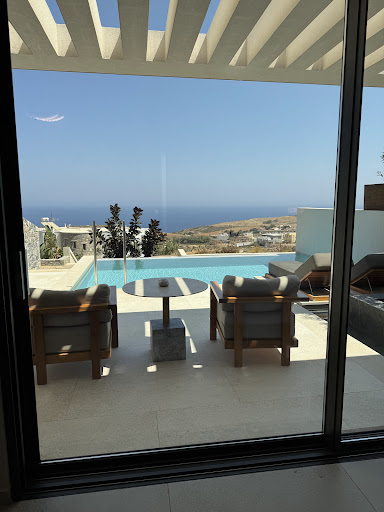 We were greeted with a drink of our choice the second we arrived at the reception desk which was the best way to start the vacation. Once we got to our room our bed had been decorated with rose petals and there was a bottle of champagne waiting for us on ice⊠we were in awe right away. We got a room with a private pool overlooking the water and it was breathtaking/worth every penny. You can open all the doors to your room while laying out and it feels like itâs a part of your bedroom. Zero problems with bugs getting in and the pool was cleaned every morning. the food at the restaurant was incredible. They did a greek night where we got to try all of the local food and were given a small bottle of local alcohol to help with digestion at the end while live music played in the background. free breakfast every morning was the best buffet Iâve ever had- they even had bottles of Prosecco at times where people could make their own mimosas, and what I liked the most is that breakfast went until 10am opposed to 8 or 9 like most places. the friendliest service all around, they were ready to help us any way possible. When we needed a taxi into the center they booked it for us, if we had questions about local attractions they were always so helpful. I want to give a special shoutout to Aspa and Georgos who were a joy to be around. there are beaches nearby that are only a 5 min taxi drive (you can also bike to it.) we had a great day at Psaramoura beach where thereâs little coves with pretty clear/blue waters, and a small bar right on the beach.