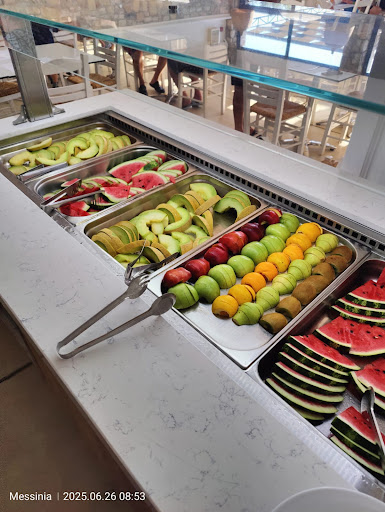 To be improved: -what are meals hours? – write them down somewhere -the indoor restaurant area should be enlarged – during “rush hours” there’s no place to move -outdoor restaurant – definitely split the smoking and none smoking area – smokers minority “kills” majority of none smokers (especially kids). Lack of shade, effect huge problem with finding free tables not in the sun -big shortfall of FTE’s – at the restaurant (long queues/lack of main dishes) and the beach – hire more people -alcohol – I’m not an alcohol lover, but quality of what is served at the bars is dramatic, wine is like colored water. Strong alcohol – whisky/vodka/gin, sorry guys, but this is trauma in mouth. Only ouzo was not bad. -coffee -the machines & Lavazza are OK, but improve setup of the coffee makers – it is now on “economy coffee” lvl -milk – this is or 0,5% milk or milk with water -beach – gigantic shortfall of sunbeds & shade – all rooms are occupied, full hotel of guests and there are few umbrellas and maybe 50 sunbeds – effect, 9:30AM there’s no free sunbeds and umbrellas -hotel parties – for hotel where 60% guests is families with kids, noisy parties until 23:00 this is unusual -poor quality of Internet – focusing on FR guests, this is visible in service quality & what FR gets (eg bar) – I have great respect against Greeks, I think that the same should be delivered to all nations -rooms - not well prepared for 2+2 families (wrong space organisation) + NO electrical outlet at bathroom