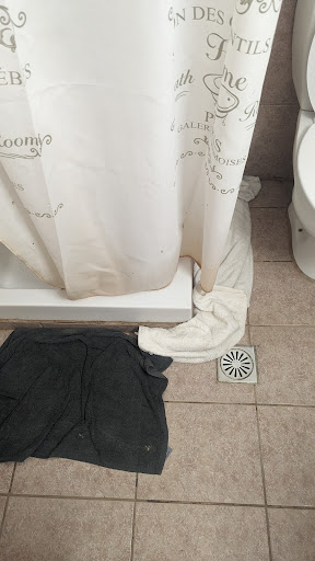 The shower we had took about 15 minutes to get warm, it wouldn't switch between tap to shower and the basin was tiny so that was annoying. The shower head was loose, worn and zero power in it. Mould in here also, the shower curtain was filthy, orange stains at the bottom. Although it was built as a wet room it flooded, we had to use towels to dry the floor which weren't getting replaced so, can get annoying. The shower curtain rail wasn't even attached to the wall, so I had to fix it myself and prop it up.