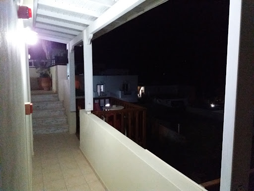 I stayed here 6 nights. I had a top floor studio which had a nice view over Lagada beach. Zacharia the owner came and picked me up at the port and took me back when I left. The studio is very clean and nice but could do with a little renovation especially the kitchen part. There are few pots and pans and as the couple next door left and the room was empty I borrowed the fry pan as mine didn't have one. The room is medium size and I was glad to be alone as I don't know where I could have put a second suitcase.||There are lots of steps to get to the rooms and then again more steps inside the building to get to the second floor with a few "tricky" places with an up and then a down again. Be carefull not to drink too much as a fall would be easy with all those steps. I paid 40 euros per night which I thought was maybe 5 euros too much for one person and early june.||The couple that run the place are lovely and Zacharia offered to drive me to the supermarket and back to avoid carring the heavy stuff...