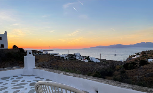 Read moreLet me start by saying that the highlight is the VIEW - fantastic place to enjoy a beverage! Sarah is a very friendly host and was happy to give us recommendations for Mykonos, which was really appreciated. The location is great, it's a 15 minute walk to town and right next to a few five star hotels (lovely to visit for a few poolside beverages!). It's also a short walk from a beach if you fancy a few dips in the sea! The internet is strong (my husband and I had to work for 4 days of our trip and were concerned about the connectivity. There was no need to be concerned - it was fantastic). The kitchen is well equipped with plates, cutlery, saucepans etc. There is also a coffee machine, you can buy pods at the local supermarket.