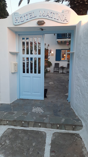 Et uvanlig hjelpsomt og oppmerksomt personale og eiere gjorde dette til noe vi kommer til å huske - som en godt ferieminne. Mange steder kan det være personlig nok, men profesjonelt. Her også slik, og samtidig en god del ut over det. :-) Personlig service og oppmerksomhet er ikke så vanlig lenger. Her VIL de at du skal trives og kose deg||||Vi har vært på Mykonos for ca 10 år siden - og nå er byen ganske så forandret miljømessig. Dessverre til en stor lekegrind for de rike og de som vil leke rike.... Flere merkevarehus har etablert seg her som Louis Vitton!!! osv. HVA skal man med det der ??? Oppfattet tydelig at lokalbefolkningen ikke er så happy med utviklingen ... ||Nå er det latterlig dyrt ift de andre øyene, nesten 3 ganger så dyrt mange steder… Drinker og en flaske øl på nattklubb tar de opp til 25 euro pr stk! Noe som du får for 2-4 euro på de andre øyene - ja noen steder en 0,5l vin for 2! Mykonos By er blitt en trengselsfull og kunstig lekegrind for de bemidlede - og alle de som vi late som de er det! ||||Det er blitt stor trengsel, og nede ved havnen er det mange svært støyende diskoteker og utesteder ( dunk dunk...) med fult av ofte godt rusede ungdommer (rikmannsbarn?) i 15 års alderen og oppover. Det er IKKE greit og skaper naturlig nok en lite trivelig stemning .... Dette er ikke for vanlige og fornuftige mennesker lenger. Her koster en flaske øl eller drink fra 25 Euro!!!. ||||De fleste butikkene som solgte lokale produkter er ikke å finne igjen. Noen få har holdt stand om du leter - en butikk der de satt å lagde lærvarer og sandaler fortsatt, ellers kun "ferdigvare overalt det samme ... :-( Og det er mye som skal selges for å være "design", merkevare i overprisede butikker som stiler mot trendyhet som ikke har noen forankring i det Greske eller Mykonos. ||||Her har opportunistene oppfattet at en International flyplass gitt mulighet for å tjene mye penger på å skape en rikmanns-lekegrind - og som de naturlig nok utnytter. Det ødelegger dessverre for de som vil oppleve det genuine og avslappede og hyggelige . Da må man vekk herfra og ut på øyene - som det heldigvis finnes svært mange av. Der servicen er ofte er SVÆRT personlig og 1/3-del av prisen enn her. ||Skal vi anbefale noe som helst må det bli:||Den opprinnelige "Pelikan" restauranten øverst oppe på det nedre torget i "enden" av lille Venezia - dvs mot havnen. IKKE nede fra torget, men den som ligger øverst. God Gresk mat og akseptable priser - OG fortsatt noe personlig drevet. ||||Vi fikk av Matina hotell anbefalt en lokal restaurant i Ornos - første på venstre hånd når du går ned mot stranden fra bussholdeplassen en tar bussen TILBAKE FRA Ornos til Mykonos - IKKE bussholdeplassen nede ved stranden. Her har de tradisjonell Gresk mat i rikelige porsjoner - prøv spesialiteten spagetti med Lam - du må BE om den! ||||Og man kan absolutt kose seg - om man er litt om seg, og DER kommer vertskapet på Matina inn ift å væresvært positive og proaktive...