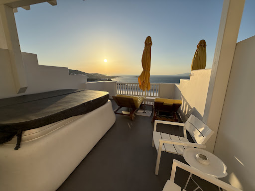 If you're planning on staying here, we strongly recommend spending at least one day having an early 8am breakfast and heading into Mykonos Town before 9am when it's quieter and cleaner and emptier, before most of the shops open and all the other tourists flood in. It's beautifully picturesque and looks fantastic at both sunrise and sunset.