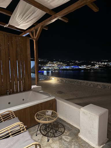 We really enjoyed our stay here. Stavros was very attentive, friendly and made us feel very welcomed. The room was clean and spacious. Decor was giving minimalism vibes but in a good way. You're not going to Mykonos for the room, get outside and enjoy the breathtaking view this place has to offer. We spent most of our time outside at the the very comfy balcony watching sunsets and in the evenings the luxuries yachts floating in the moonlight. Take in the incredible view of the nearby beaches.