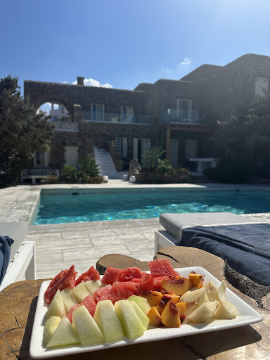 Read moreThis place is really special. It’s not far from Mykonos Town and close to other villages full of restaurants, bakeries and cafes (you’ll need your own transportation like a car or ATV) yet feels secluded in a beautiful rural way. You see a beautiful bay and beach (walking distance) and hills with goats (who often come to visit). The rooms have their own pool with private lounging area or you can choose to go to the main communal pool that is perfect for laps and relaxing under the umbrellas. Speaking of rooms - the design esthetic is superb – all white in a shabby chic kind of vibe with chandeliers and white washed hardwood floors. Really cool. The service was also very personal and personable as the staff interacted with us and we had deep conversations with them about life in Greece. We also appreciated being able to do our own laundry as we were...
