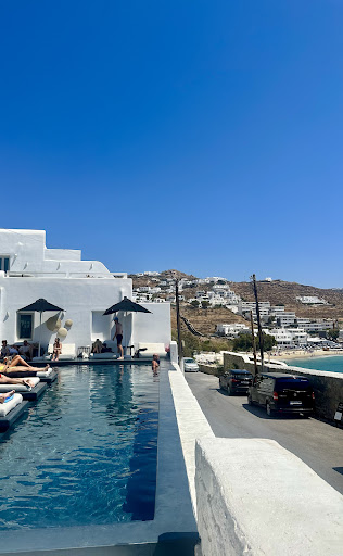 Read moreWe stayed at this hotel for the last part of our Greek island hopping adventure.|We had 3 nights bed and breakfast and thought it was a lovely experience.|On check in our room was ready, we were given a tour of the hotel’s amenities then a welcome drink in the bar.|Our room was 110, overlooking the main pool with massive seating area with sofa and cushions.|The theme of the hotel is Black and white, our room was minimalistic, air-con was brilliant. Free safe, coffee making facilities. Fridge with complementary drinks and water refill free of charge each day.|Funky bathroom with good rainfall shower and nice toiletries.|King size bed was very comfortable.|Tv had no English channels.|The hotel has two pools. The main pool (outside our room) had chunky comfy loungers pool towels provided. Music played from 8-11pm bar had a good service and reasonably priced. Food did look good but we never ate there.|The quite infinitely pool was up a level, with sofas and umbrellas was an oasis of calm very chilled with lovely views over the beach and sea towards the new port (great cruise ship watching)|Breakfast was nice , fairly standard selection to pick from a buffet.|The resort of Agios Stefanos is small, couple of nice restaurants, superb supermarket which also sold freshly made sandwiches/rolls and pizzas with a sitting area outside.|Great bus service into the new port and Mykonos old town €2 each way runs 10 past each hour from the bus station on the beach.|Fabulous beach, crystal clear sea, Sun lounger hire varies between €40/€20 a set. We used Nosotros loungers great bar/food service to your lounger.|Staff at hotel are very professional and friendly.|Communication with reception is through WhatsApp and works very well.|We absolutely loved Mykonos and will definitely...
