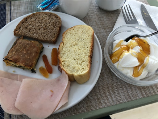 Read moreWe stayed her for 2 weeks which I would say is quite unusual, lots of travellers or so it seems use it as a passing through stay, as it is situated near the new port where the ferry come in.|Our stay was the end of June beginning of July so not a lot of children (great for us) we stayed in room 22, 50 steps from the bar/restaurant area.|When we arrived George greeted us with a warm welcome giving us a map and telling us how to get about and some of the local historic things to see. He was helpful all through our stay the whole staff were warm and friendly and nothing was too much trouble.|Our room had a lovely view of the port and a bit of a sunset view too. The cleaners kept it spotless also fresh linen and towels regularly. There was no charge for the air conditioning and safe which we thought was great, complimentary toiletries were very nice, having known this I would have not taken any. The wardrobe space was a little awkward if you have long dresses it was a problem, hair dryer could be a little nearer the mirror, but was very good.||Pool area has towels you can use on a daily basis with no charge or deposit, if you were heading out to the beach or going on a trip they give you towels from Reception still no charge or deposit.||Restaurant has a limited menu, could do with maybe a bit more of a snack / lunch choice but the food was fresh, presented well and was of good quality.||Breakfast was very similar every day but breakfast is breakfast, lovely dinning room and 2 terraces overlooking the new port. You can help yourself to as much as you want.||I would recommend this hotel for a short or long stay...
