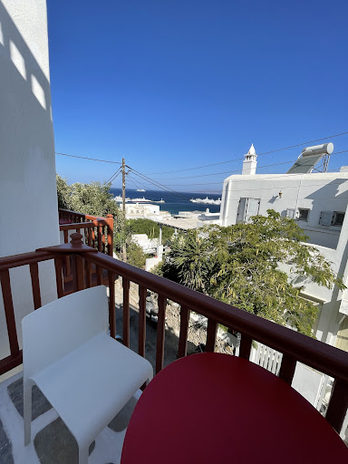 Read moreThe hotel is conveniently located in the centre of Mykonos town, yet away from the bustle. Some 50 meters (uphill) from the Old Port (where you can catch Sea Bus to thr New Port, if needed) and short stroll from Little Venice, Mykonian Windmills and Fabrika bus station. The breakfast is not spectacular, but it is nice, tasty and reasonable for starting your day. There are plenty of eateries nearby, if needed. We did not need further dish before lunch. The rooms are nice and clean, with luxury-feeling decor. People are welcoming, friendly and helpful in adressing any inqueries. Two big bonuses are a big 360' rooftop terrace with stunning views and an option to take free shuttle to and use the pool and services of their sister hotel located between Psarou and Platis Gialos beaches. We had a lunch there and it was tasty & cheaper compared to most of the locations in Mykonos Town. The only downside of the sister (beach) hotel is that one needs to use stairs to access the sea going straight to 2m depth. The only downside of the city hotel could be the need to ascend a hill if going from the port/Fabrika station (mostly with 20+ kg luggage) and aome noise from bars above. Nonetheless, I'd say that noise is not lower anywhere from Windmills to New Port.||All in all, I definitely recommend to all but people with small kids and will return, if I come...