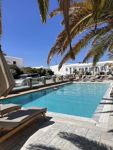Read moreFirst stay at this hotel, which close to all amenities offers a restricted parking area quickly encumbered with quads cars and scooters. Room 104 facing the pool, quiet atmosphere and discreet staff, do not expect the morning hello. Quick daily housekeeping do not look under the beds ... Room service very expensive even in coca day 2.50 € ouzo 5 €! Buy your bottle at the supermarket and consume in your room! Small private terrace nice but no outside light, we had to turn on all the lights in the room to light up. Breakfast minimalist, little choice and impossible to take outside, only one coffee table under the stairs leading to the roof terrace. The room is basic (104) facing the pool TV equipment ok but no international channels !!! As for the bathroom, it would be good to consider the replacement of the sliding shower door, flooding to each shower. My ratings for this hotel 5 of 5 stars Value 5 of 5 stars Rooms 5 of 5 stars Location 5 of 5 stars Cleanliness 5 of 5 stars Service A hotel close by offers better services. Having stayed a dozen times in Mykonos (Mykonos Bay), I will not be staying here again. I will add no shower on the pool side, strange and unable to shower before departure to the airport around 18.00, having cleared the room at 12.00 it is not possible to use the shower of a free room ... The heat was on the side but am a little disappointed with the accommodation although ideally located, I was staying 11 days in this hotel...