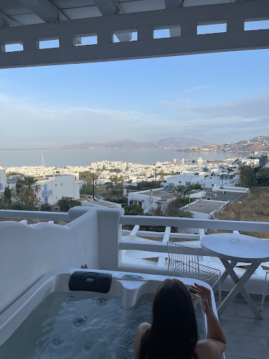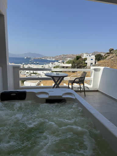 My family and I stayed at this hotel for a week in August 2022. It is a small hotel close to the centre of Mykonos Town though far from all the noise. From the moment we arrived, we loved our accommodation. The room was very clean (it was cleaned every day), spacious with unique furniture. The jacuzzi on the veranda was also clean and we enjoyed it a lot. The view from the room/veranda is just breathtaking. I have read online a few people complaining about the hill they need to climb when coming back to the hotel but that's a fair price to pay so that you can have that view, so we didn't mind it at all. It is always very close to Fabrika bus station where you can get a ride to all the popular beaches in Mykonos. The hotel owner - Marina is the loveliest woman I have met, she was always pleasant, helpful and cheerful and even gave us a ride from and to Mykonos airport. They say kids are far more honest than adults and my daughter loved Marina so much that she had tears in her eyes when we were saying our goodbyes. Taking into account the accommodation, price, location and service, this is a great hotel and I strongly recommend it to anyone...