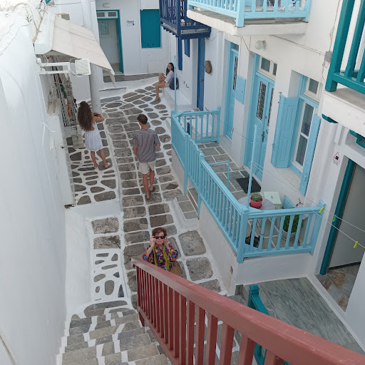 Our experience was HORRIBLE. When we arrived, the owner left us waiting outside, as there were no bells to ring and she was nowhere to be found. Then, when they finally let us in, we had to reach the room, which was on the top of an extremely steep and narrow staircase. It's an extremely unsafe and difficult way to reach the room, especially when you're traveling and have luggages. The room itself was very small and very dirty, way different than the pictures shown here. Sleeping was also very hard, because of the noisy neighbors (that even tried entering our room), because of the old door that made noises ALL NIGHT LONG because of the wind, and because of a club next to the house that pumped music till the morning. Then, in the morning, we had booked through the hotel a €30 transport to the airport (which is already more than other taxis ask). When we showed up to the meeting point, we didn't see the drivsr, so we took a taxi since we had a flight to take. Ten minutes later the owner started calling us, furious, and said that we purposely kid them. She said the driver saw us taking a taxi (why did he not stop us, then? we were clearly looking for him before taking the other taxi), and she started threatening us telling us the police was outside of the airport and that they were going to come inside and make us miss our flight, unless we'd make an instant payment to the Iban she sent us. If you plan on visiting Mykonos, DO NOT STOP HERE. Honestly worst experience possible, never...