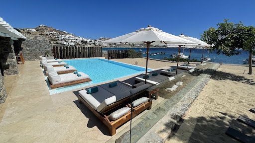 Note of advice: hotel is not near the sea, but a few hundreds meters away. Walking into town is almost impossible due to lack of sidewalk on the road into town and the huge stench of sewage almost the entire length of that road. The pool is very small and not inviting. With the row of lounging chair, it felt almost like a motel pool. Avoid room 118, absolutely nothing honeymoonesque about this bunker. We won’t be back but if you care for the beach go to an hotel on the beach, if you care about close access to Mykonos town, go elsewhere closer...