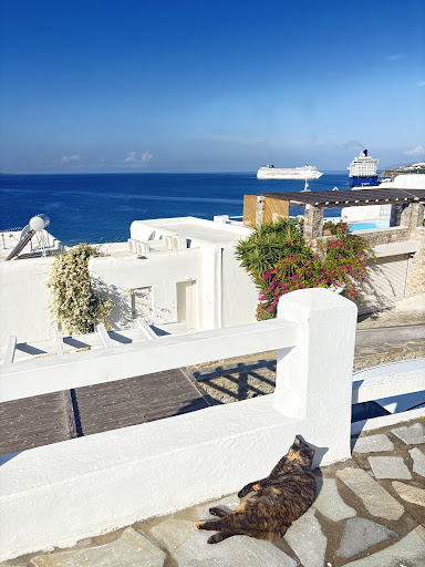 We stayed at the With-inn Suites for 3 nights. The hotel (more like an American Motel) is a non-descript economical sort of place stuck about 1km from the new port (a quieter part of Mykonos) and not too far to the old port and centre of Mykonos (about 15 mins walk). We walked from the port to the hotel although there isn't much of a real sidewalk once you leave the port area but the walk isn't that long - takes about 20 mins. Alternatively, I think the hotel can organise a taxi but Euro 20 seemed expensive if you enjoy walking anyway. The room was rather basic but spacious and very clean and provided WiFi. The hotel has a great view of the Western Aegean sea giving uninterrupted views of sunsets. The room had a nice sit-out terrace with chairs and loungers. There was large screen TV in the room and nice bathroom with normal amenities although there was no moisturising lotion. Anna the host was very friendly. The only challenge was climbing up the steep ramp and stairs to the hotel that is stuck on the side of the cliff and about 50m in from the main road. So avoid carrying heavy luggage if you can. It may also be uncomfortable for the not so agile and physically fit or the very young. There isn't much in the form of restaurants and other entertainment in this part of town, so be prepared to hike along the coast to the Old town or order food in. There is no breakfast included although they do cater for a charge. We did a hike from the hotel to Paradise beach which took us the better part of a full morning but not a great hike as most of it is along the main road to that part of town. The city operates local bus services which may be a...