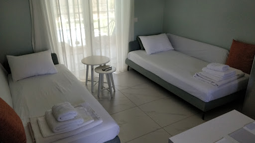 Had a great experience here. It's a cozy hotel consisting of only 8 or so beautiful apartment suites. Mine was equipped with a single bedroom and a nicely furnished bathroom. The 2 sofas in the living could also be used as beds, though. It also came with double balconies, one at the front and one at the back so there's always a place to chill. The pool is of decent size and there are plenty of beds for everyone. In short: it's a very nice place to relax.