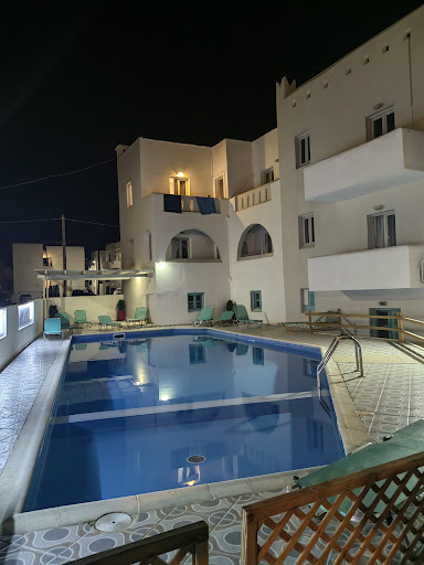 Read moreWe stayed for 5 nights at the 2 bedroom apartment with 2 kids (9&5).|Both rooms are spacious, clean with comfortable beds, air con & wifi worked well. It is a basic hotel with no frills but for us it was just fine. The kitchen is small, we only needed to cook breakfast, everything we used got cleaned daily and so did the room.|The kids room was on the road side so when the balcony door was opened it was really noisy, it did not bother us as it was too hot to keep the doors opened anyway plus we had a second balcony that was at the back overlooking the tomato plantation.|A special thank you goes to Sofia at the reception who is very friendly and gave us lots of tips of where to go and eat. But the star is George a very gentle soul who was always so helpful. He helped us organize a car hire, went to pick us up at the port and dropped us off there as well at 5:30am. Thank you so much again George.|The location is a bit away, not too far though, a nice 10/15 walk to the port which we did not mind at all. And yes, it is in a busy road so you have to be really careful specially with small kids but it's only for a small portion until you get to the bakery.|In all I would recommend this hotel for the price, location and spacious rooms. I would stay...