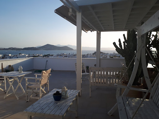 Read moreOniro Studios||||Naxos Town||||Great place to stay.||||619238727||||The Oniro is an excellent hotel in the St George’s Bay Area. It is situated within a few minutes walk to the square with several good restaurants & a few more minutes to the town waterfront. St George beach is a couple of minutes walk in the other direction.||The Oniro is also situated in a quiet street with very little traffic noise, day or night.||The owners, Petros & Georgia, are a lovely couple who will do their utmost to make your stay a pleasant one.||During our stay we were in two different rooms. Both had been newly refurbished & were immaculate, boutique rooms with a hi tech lighting setup. Everything was in pristine condition during our two week stay there.||We were met at the port by the owner who transported us to his hotel. We were given a beer each on the roof garden & told that free coffee & cake would be available each morning at 9am served by his wife Georgia. ||The highlight of my stay was the fact that the large rooftop area was freely available to guests. The whole area is very tastefully set out with tables, chairs & couches. There was also an area under cover in case of rain. There is a great sea view & hillside villages to see & while we were there great sunsets.||There was also a fresh drinking water tap there if required.||The Oniro enjoys many regular & seasoned visitors who come year after year and this is an hotel which you will also wish...