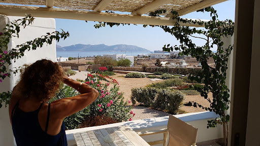 Read moreSeconda volta! 10 notti non sono troppe!|Mi ripeterò perchè, nuovamente, è stato tutto oltre l'eccelenza.|All’arrivo al porticciolo vengono a prenderti, l' hotel dista pochi minuti. Stesso servizio, gratuito, quando parti. Abbiamo noleggiato bici elettriche a circa 18 € al dì cadauna … i tragitti non sono lunghi, ma sono pigra e la bicicletta consente spostamenti ovunque e rapidi. Per andare in centro si può tagliare dall'hotel ed in 10 minuti, a piedi, si è in centro.|Atmosfera|Regna la pace. ed il buon gusto. Estremamente rigenerante: gli ospiti non schiamazzano ed i pochi bimbi sono contenuti da genitori educati che rispettano la quiete del luogo. Al mattino si sentono i galli (quest'anno uno se lo strozzano non piango :) ) ed il belare delle caprette del vicino... bacini anche ad Olga. Io avverto una piacevolezza difficilmente provata in altri luoghi.|Giardino/struttura|Gli esterni sono un gioiellino: curati, puliti, vista splendida. Discesa al mare da cartolina. Ho apprezzato nuovamente tanto l’intera struttura e anche la bellezza degli arredi e delle diverse pavimentazioni. Tanto tanto tanto tanto buon gusto in ogni angolo e tutto che si integra perfettamente con il contesto. Luci perfette.|Piscina|Acqua con temperatura gradevole. Se sprovvisti vengono forniti splendidi teli che devono però essere utilizzati solo in piscina.|Servizi|L'hotel offre servizio di prima colazione incluso; torte fatte in casa, prodotti da forno dolci e salati, uova a proprio piacimento, frutta fresca abbinata al loro strepitoso yogurt con miele e cannella… ottima, e viene servita al risveglio in piscina o nel patio privato della camera. Comunque viene richiesto cosa è gradito.|Durante il giorno si possono gustare fresche insalate e tanto altro.|Camera|L’hotel dispone di poche camere… aspetto che prediligo e ricerco in ogni viaggio.|Accogliente e profumata è dotata anche di un mini frigo, lavabo, piatti, bicchieri e posate nel caso si voglia comprare qualche cosa all’esterno e consumarlo in hotel.|PULIZIA PERFETTA.|Non mi rassegno all’assenza del bidet :). Gli asciugamani vengono cambiati quotidianamente. Letto comodissimo. Patio privato: il nostro ombreggiato da una bella bouganville che mi ha così conquistata da avermi fatto comprarne una per il mio giardino così da ricordarmi di questo splendido luogo. Credo dispongano anche di appartamenti con cucina.|Le Persone|ADORABILI TUTTI. Dalle chiccose/deliziose titolari (la mamma è addirittura affettuosa e ti fa sentire come se ci si conoscesse da sempre 🫶🏻... e non da paracul... quest'anno me la sarei portata a casa con me), al Super Boss George adorabile per la sua gentilezza e bontà, ai bravissimi collaborati, che non si risparmiano nell’elargire professionalità, splendidi sorrisi e tanto buon umore. Tutte bellissime persone. Saranno loro a fornirti qualsiasi suggerimento utile per un soggiorno perfetto… non sbattetevi in inutili ricerche.|Fotini grazie di cuore per TUTTO e bacia quel pazzo scatenato di Cristos che non ha capito che di tutte le frasi in greco che mi ha rivolto non ho capito alcun chè ... ma è simpaticissimo.... rivelazione di quest'anno.|Girando l’isola (più o meno grande come il quartiere dove vivo) si ha l’opportunità di vedere altri hotel e questo è quello che ho trovato una spanna sopra a tutti ed è situato in posizione perfetta.|Torno a Bologna sempre volentieri ma anche questa volta lasciare questo posto/persone, quest'isola meravigliosa e cibi gustosissimi mi è tanto dispiaciuto.|Pertanto ... ci vediamo l'anno prox. A presto miei cari ed un forte abbraccio a tutti … siete...