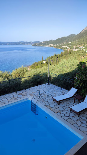 We spent a wonderful week in this comfortable villa. Layout is practical and worked very well for our group of 6 The villa has a welcoming energy & is perfectly positioned on the hillside with beautiful views overlooking the bay below. The pool area was so enjoyable and essential during the intense heatwave. We also loved the balcony area for breakfast or simply sipping wine and chatting in the shade. The sitting room is particularly comfortable with a generous tv & soft sofas. House keeping called mid stay to replenish towels & change beds etc which was a lovely bonus. Kitchen is fully functional and convenient. Beds firm but comfortable. Water pressure in showers great. Washing machine easy to use & convenient. Spyros was always helpful and always quick to reply to any texts particularly when we woke to no power on our first day. He immediately found out information for us ( repairs in the area and not an internal issue). Joanna called in person on our first day and she was so lovely & friendly. I simply cannot find fault with anything. Previous reviews mentioned the interior as being a little tired or in need of updating, but honestly it is charming and more importantly everything is very clean & works well. I would have no hesitation in recommending this villa. Whenever we decide to return again to Corfu we will always choose this Airbnb if it is available based on its comfort, cleanliness, functionality & location. The gateway is tight (we had a large van) it’s best to reverse in, the wall juts out slightly on the left (as you reverse in) & the shrubbery can make it a tricky entrance to navigate especially in the dark but it *is possible to fit in :) Joanna told me they managed to get a camper in last year!! Also: I highly recommend Nisaki beach which is just 5 mins down the hill, a beautiful place to snorkel & swim & great food and drinks, vibes & people. Also there is a handy supermarket on top of the hill that leads to that beach. Overall both the villa & its location worked perfectly for us. Thank you Spyros & Joanna for having us. We fell a little bit in love with Gran...