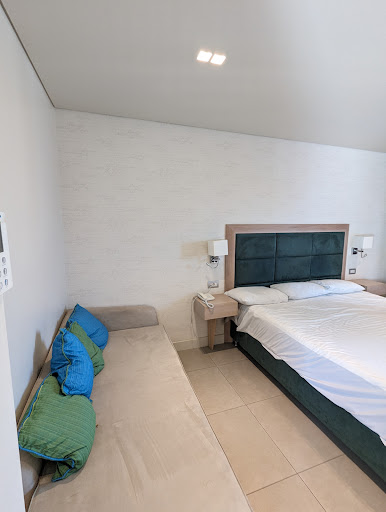 Read moreOur room was very dated, as in 70s decor, old furniture & questionable wallpaper which was a bit of a shock after entering a very modern and impressive reception area. The room next to us had my mum and step daughter in and their room was much more modern and obviously fairly newly refurbed. The shower was awful and barely attached to the wall. It was rusty and full of limescale and it flooded the bathroom everytime we used it. Safety deposit box didn't work, we were told at reception to follow the instructions, but there weren't any. Not at all sound proof, you could hear people scraping furniture, slamming their doors, foot steps from other apartments and wardrobes slamming. This is one of my biggest bug bears in resorts. People nowadays are not considerate to others and it is not nice having to listen to people above or below you slamming around at all hours, even more so when you have children trying to sleep. This should be something hotels make a priority as far as I'm concerned. We paid for a sea view room, which was a bit of a push in what we were given as directly in front of us was another block of apartments, but we could see the sea to the left, sort of. Beautiful views of Albania from the main walk way down to the pool. Reception area very impressive, which as i said above, made the style of our room an even bigger blow. The grounds are beautiful, very well kept, clean green and luscious, no rubbish anywhere. Free WiFi for guests which worked OK. The pool was absolutely freezing!! I hated it! Wasps are absolutely everywhere all day which is exasperated by sugary drink cups and food plates being left by the pool. Absolute nuisance and 2 out of 5 of our party got stung. There are also mosquitos everywhere as, so we all got absolutely eaten alive. Some activities on during the day. Excellent food, very surprised considering some of the reviews I've seen. Breakfast selection is plentiful, so much choice. Lunch at the pool bar is great, fresh salads, pastas, rice, orzo, pizza, pasta sauces, pork, chicken. Food on our last day however was appalling. We were returning the day before the end of the season, so I assume it was because of that, but it was just not at all pleasant. Dinner excellent, the food is so flavourful and fresh. Desserts a bit sickly for me but again plentiful choice, plus fresh fruit and ice cream. I fail to see how there isn't something for everyone. A bit of a bum fight, but if you take it as it is and queue patiently you can get exactly what you want. I'm not 100% sure which beach is the hotel beach. The one we used was to the left of the back gate and past a mini market and small church. Beautiful white sandy beach with sun beds and umbrellas available to hire for a minimal fee. Pedalos and boat hire is also available. I loved it there and we had some of our best days on that beach. The sea was warmer than the pool at the hotel and it was calm and quieter and just gorgeous. I recommend. We also had a lovely lunch at a place directly opposite the beach (Finakas I think). Entertainment - mehhh. For a resort this big it failed to hit the mark for me. There seems to be only one gentleman running the entertainment, both at the lobby bar and the pool bar where the main "entertainment" appears to take place. I feel for him as he's very good at what he does but is let down by a very mediocre technical set up. The highs were the live band and the Greek night for us. The pool bar is not big enough to cater for the number of guests this hotel can hold and on many occasions we had to hunt down chairs and/or a table to piece together. The Italian restaurant is run from the food court in the pool bar, so tables are utilised for those eating there on some evenings, which makes space even more of a premium. All in all, we really enjoyed our week here. But there are definitely some areas I think could be worked on to improve the overall...