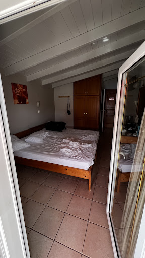 We stayed only one night because we were taking the ferry to Zakynthos the next day. We had 2 conjoining rooms for 2 adults and 2 kids. The only awkwardness was that the conjoining door doesn't open 180 degrees, more like 90, so we had to warn the kids to be careful. Totally comfortable distance to the beach, and the walk was scenic. The building itself isn't that new, so rooms are smaller than American motel rooms, but standing shower bathrooms are updated. Our room on the second floor had a clean little balcony to hang our wet swimwear. Because it's on a hill, the view of the stores across, winding streets added to the cozy atmosphere. Lobby seating was breezy, comfortable and welcoming. Breakfast included a very nice variety of typical Greek items, olives, yogurt, sliced tomato and cucumber, but also fried eggs and hardboiled eggs, breads and cakes. Owners talked to us and the service made us feel like family. Overall, Greek beds are firmer than American standards and we really liked that. We could've easily stayed longer after our...