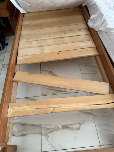 The beds in our room were completely unacceptable — sagging so badly that when we lifted the mattress we discovered several slats missing, along with a broken headboard. It felt like trying to sleep on a collapsing hammock. On top of that, the soundproofing was practically nonexistent. You can hear everything from every room around you, as well as every conversation happening in the echoey reception area downstairs.