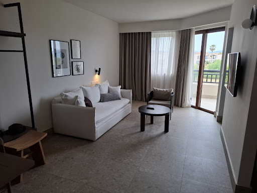 Read moreThere is no doubt that the hotel offers a nice relaxed atmosphere. Located about 30 minutes from the airport, the staff are excellent and very helpful. There is little nearby, so if you do want to get out for the day, then you will have to organise a trip, which the hotel can do (the cookery class was outstanding), or make use of a local taxi, or a bus which runs every hour I believe. We found two interesting WW2 historical sites nearby, which were only a 10 minute drive away. The town of Chania is about 20 minutes drive away and offers some lovely town walks and excellent restaurants. |The hotel itself is relatively small, so you don’t feel overcrowded. You can either sit beside the pool or take a sun bed on the stony beach outside. The advantage of sitting on the beach, is you don’t have to endure the ridiculous music that they insist on pumping out all day beside the pool. Why on earth they choose to play bad karaoke music some days and heavy metal the next, baffled me. I did ask for the music to be turned down on several occasions, but sadly my requests were ignored. When around the pool area, it is possible to take advantage of the app and order some drinks directly from the comfort of your sun bed which is a really good feature. Sadly not all of the menu items on the app worked, so there’s clearly more work to be done there. |The hotel information states there are 2 bars - one in the lobby and one at pool side. The lobby bar was never in operation during our stay, so there is only one operational bar. I did find it amusing that they state they have a pool and outside pool. By outside pool, I think they mean the sea, unless I missed something ! |The hotel has a pool side restaurant, which is open for breakfast, lunch and dinner. Breakfast is a good buffet style, with fresh omelettes and other hot dishes available, as well as yoghurts and fruit etc. lunch is a set menu, which never changes. Sadly there’s no offering of a simple sandwich or small snack, you have to order the full lunch dish on offer. |Dinner is again a buffet style, with normally a roast on offer, plus a couple of other hot dishes. We found it difficult to select something we liked on occasions and always found the roasts very dry. Alongside the pool restaurant, is an “a La carte restaurant” with a menu that never changes. Whilst it is possible to book this every night if you get in early, we found the food a little underwhelming. The only exceptions were the sea bass starter and souvlaki. Wine is on offer, but it is only Greek wine.|On some nights there is “entertainment” sadly with the exception of the saxophonist it is pretty dire. |Our friends stayed in the rooms on the first floor and they said they were bright and spacious. Sadly we were on the ground floor and the rooms from number 101 along the side, facing the sugar cane are constantly in the shadow, so you get no sunshine into the rooms at all. The rooms are also a lot smaller than others. Whilst there, we also endured a couple of power surges and were woken at 1am/2am to a bright security light suddenly shining on in the room and the air con shutting down. Power was restored within seconds, but it did wake us every time. We were also woken on several occasions by the television suddenly coming on for no apparent reason. |As a seasoned traveller, I always ask myself at the end - would I return ? And the answer has to be no, not to this hotel, but I would return to Crete as I found the island and people really nice and the food outside the...