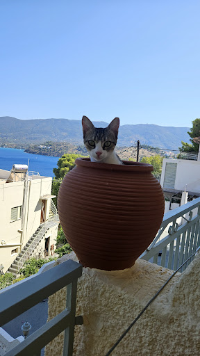 I picked Fedra apartments for a work/holiday stay. I was there for a month and I can say that I had a great time! Very friendly staff, super friendly cats, and an AMAZING view from the balcony. Very close to the beach, only a few minutes away and about 20 minutes walk to the main town, but there are restaurants, small markets and a bakery close by. There is a short, steep walk to get there, so people with mobility issues may have problems, but for me, there was no issue in going up. I loved my stay, and I'm looking forward to coming back next year!...