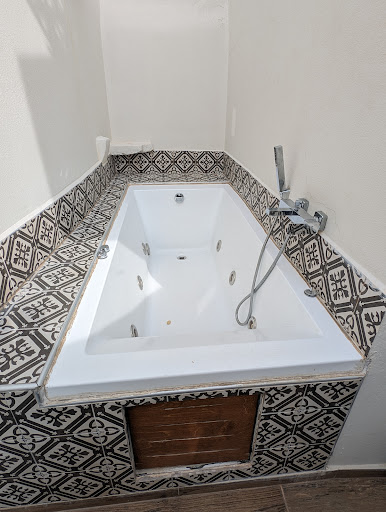 Read moreIt is located in the Old Town. There are only six rooms and so there isn't anyone there full time- they request that you tell them when you plan to arrive.||We have a good sized room with a private deck. On the deck there is a very large Jacuzzi, though we didn't use it. A large umbrella provides shade. There is a table and chairs where it is pleasant to eat breakfast or you can go up to the roof and dine there in the sun. There is also a folding contraption that you can use to dry your towels or clothes. There is an exercise ball and two inflated lounge chairs.||The king sized bed (actually two singles attached and sharing the blanket) is very comfortable [if you like firm mattresses - most Brits won't like the level of firmness].||The shower, toilet and sink are all in separate areas. The shower is large and very good. It is totally enclosed so there is no risk of water getting on the floor of the room. If you use hair conditioner bring your own as it's not provided (skin moisturizer is however).||The breakfast is delivered to you in a basket. You call down after 8:00 AM for it. It is good but of course you don't have the multitude of choices that a hotel's breakfast buffet offers. For example it has only white bread not the whole...