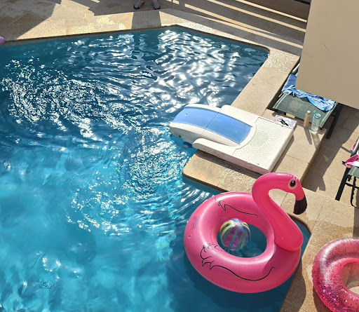 Cons : BatroomS (one is dangerous with plug next to the shower These shower is made for children (too small ~1,50m 😉) The other bathroom is old and Toilets literally wedged between washing machine and bathtub Pool too cold and not heated. The sun is there only until noon.