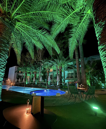 The pool area is beautifully designed, with a hot tub section and loungers arranged to suit every preference — some shaded naturally by palm trees, others basking in the sun. A poolside bar ensures you’re never far from a refreshing cocktail, a glass of wine, or a quick bite to tide you over until dinner.