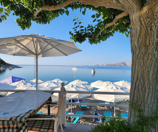 My wife and I enjoyed a wonderful two weeks at the superb Haraki Bay Hotel Apartments, late June 2023. In over 30 years of holidays primarily around the Mediterranean, these apartments have been by far the best appointed self-catering accommodation, complemented by the most friendly and personable team of staff.||Recently completed in 2021/22, the block of 8 apartments is situated on the quiet street just behind the Haraki Bay Hotel and only 2 minutes walk to the beach. Each apartment overlooks a delightful immaculately maintained garden. This road is a cul-de-sac with only an occasional vehicle accessing the neighbouring holiday apartments.||Our apartment had air conditioning in both the bedroom and lounge areas, televisions in each room with a comprehensive range of multi-language channels, and ample wardrobe storage space, including hangers.||The bed was very comfortable, particularly for those who prefer a firmer mattress, with linen changed frequently.||The bathroom was spotlessly clean with a modern drench head shower and hot water all times of the day. Hand and bath towels were provided and changed frequently.||The kitchen was fully appointed with a full sized oven, 4 ring induction hob, family sized fridge freezer and even a dish washer.||The room was serviced daily, with all waste bins emptied, and floors thoroughly swept and mopped.||Our ground floor balcony faced south which meant that it was in full shade in June, perfect for dining around the large table, or relaxing with a book and drink without being frazzled by the intense sun.||Chris and her team at the Haraki Bay Hotel were a delight and we were treated as though we were family throughout our stay. From the late night check-in to our evening departure, we were greeted with smiles, humour and the most amazing service. Nothing was too much trouble. The staff transformed a great holiday into a fabulous holiday.||We followed the advice from the hotel and booked a local taxi (by WhatsApp) for transfers from and to Rhodes airport. Booking and confirmation was very professional, and the drivers were on time and very friendly.||The restaurant at the Haraki Bay Hotel was one of our favourite in the resort, so much so that we dined here every day during our second week. We quickly realised with the generous portions of the main course dishes we were better following the locals practice of ordering several hot and cold starters and one main course, grazing across all. Prices across the resort were fairly consistent.||Haraki is a delightfully quiet resort, primarily based around a small bay fronted by restaurants and holiday apartments that directly access the promenade behind the beach. The beach itself is sand and shingle, so wet shoes were popular, with plenty available to purchase in the 3-4 holiday supermarkets in the resort. The beach shelved fairly steeply so it only took a few steps over the shingle shoreline to reach sufficient depth to swim. This probably isn’t an ideal beach for toddlers unless fully supervised. Sunbeds and parasols were available to rent, with shower stands peppered along the beach. There were even a couple of changing boxes to save wrestling with towels.||A 20-30 minute walk from the resort takes one to the adjacent golden sandy beach of Agathi. This gently shelving beach was popular with local families, particularly at the weekend, and the offshore floating water park looked to be enjoyed equally by children and adults. There are plenty of sunbeds and parasols for rent, and two beach snack bars, with toilet facilities.||Day time activities in Haraki are essentially centred around the beach, although it is possible to ascend the hill behind the resort to reach the impressive ruins of the Feraklos Castle, with stunning views south towards Lindos, and north towards Tsambika. Kayaks, stand-up paddle boards and small motor boats are available to hire within the resort for trips to neighbouring bays, and a skippered keelboat sailing experience for those wishing something more adventurous.||Evening activities in Haraki are all about enjoying a wonderful meal, wine, good company, and peace and quiet. This is not a resort for those wishing a party experience, and with that comes the relaxing charm of Haraki.||Our previous holiday in Rhodes was in 1991 to Pefkos when it was little more than a sandy beach and handful of apartments and tavernas. Whilst we choose to holiday in new locations when possible, the Haraki Bay Hotel is one location to which we would have no hesitation...
