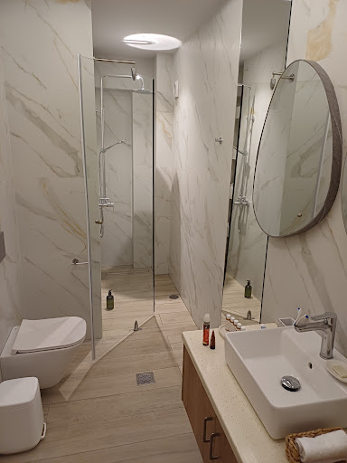 We very spontaneously discovered this incredible accommodation in Charaki, absolutely the best one we have had so far in the island. It’s modern, fully equipped with everything possible you’d need, spacious (we loved the enormous bathroom and shower), and has a massive balcony with an outside shower that we grew to appreciate coming after beach. The beach is 20m away and there is a store right next to it. All restaurants, promenade, and village spotlights are just steps away. The host Chrysanthi is very nice and always available for whatever we needed - she really equipped the space with everything a couple would need including prosseco, sweets and water as welcome treats. When we are back to Rhodos, we will only stay here. A word about the village now that we managed to explore most of the island: it’s the most ideal spot boasting a lot of restaurants, touristy but calm vibe, and the best sea water one could imagine (because it’s a coast - it was rarely wavy and we loved the little rocks as it makes you less messy but you also have Agathi beach 2km away in case you want a proper sandy experience). Lindos is just 8km away so we could always visit it without having to worry about parking and moving suitcases up and down the steep hills. The accommodation and the village were the...
