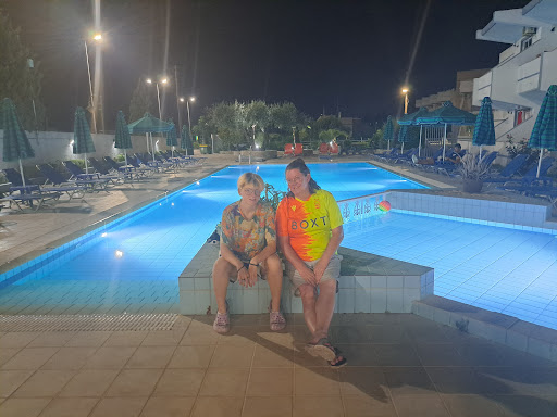 Read moreThis is a lovely, friendly, family run Apart-hotel. We were welcomed by Lennie the Manager with a cold bottle of water, quickly checked in with no fuss and shown to our room which was spotlessly clean and well maintained. Katina Studios have 3 buildings, some rooms faced the pool and others had glorious views across the hills or towards Faliraki. The pool and safe toddler pool had plenty of sun beds and umbrellas and there are well maintained grass areas and nice planting. There is a bar area with space to sit in the shade or sun and a good size TV and pool table. Internet, wow! Katina has recently had a new Mesh Wi-Fi system installed and in all locations we tried we had an ‘Excellent’ signal. In fact it was reliable and strong enough for Zoom calls. Katina would be a perfect location to have a working holiday, a couple of hours working on the balcony and the afternoon in the sun. The small kitchen in our room was sufficient for our needs and we cooked a few meals (we could have done with a few more cooking pots but made do with what we had). Fridge, kettle etc. were new and functioned well. We took the opportunity to buy a Greek coffee pot for fresh coffee – everything we needed was available in ΚΡΗΤΙΚΟΣ Supermarket and Katina has a menu for breakfast and snacks. The location was good for us as we used the bus system to explore the Island, bus stops in either direction are only a few minutes away. Yes, there is some traffic noise but that was offset by peaceful nights with no music from noisy bars or drunks walking past in the small hours. The walk to the beach was a pleasant 15 minutes and the Faliraki road train passes close by as it drives up Asklipiou and back towards the beach on Poseidous roads so the main Faliraki ‘strip’ and beaches are easy to access. Anthony Quinn bay is 30 – 45 minutes easy walk. We would stay with Katina again, good value, clean rooms, a stunning view and good company from both...