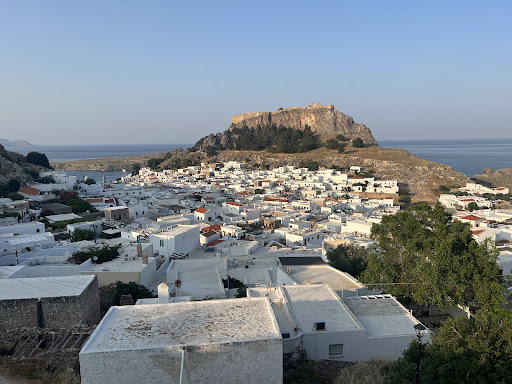 Read moreVery good location-- near St. Paul Bay beach, with parking close by, and in a quieter part of the village, away from the insane crowds of day trippers. Views of the acropolis and the bay. Well-equipped studios with kitchenette (two electric burners and everything you need to cook), sofa, safe, armoire, table and chairs, mosquito netting on one window). The top studio is best (spacious terrace with great views, privacy). The ground floor studio, where we stayed, has its own patio space with table, chairs and umbrella, but its in the thoroughfare, and you may hear the people upstairs more than you'd like. Luckily the owners and the first set of neighbors were very thoughtful and gave us plenty of space and privacy, so that wasn't a problem. One negative: the installation of the bedboard that kept us out of the room at the time when we wanted to take showers and cook dinner could have been better planned, but the work is done now, so it won't be a problem for you :-). Overall an excellent place to...